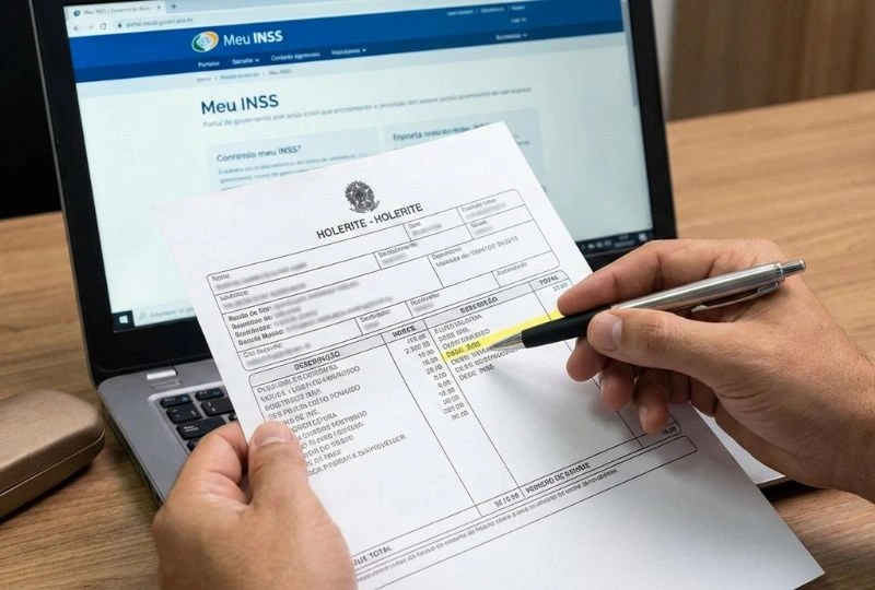 Quando a suspeita de erro no desconto do INSS envolve vários meses, é importante reunir todos os holerites do período.